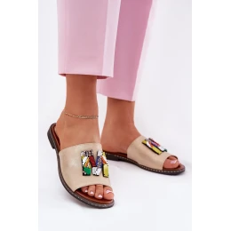 Dámské Pantofle Na Plochém Podpatku S Ozdobou Zlaté Clelione