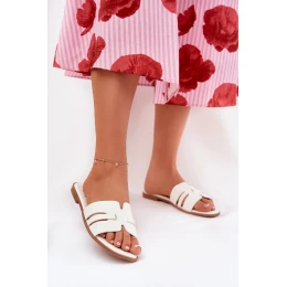 Dámské Pantofle Na Plochém Podpatku S Výřezy Eko Kůže Bílé Ecapus