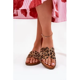 Dámské Pantofle Na Plochém Podpatku S Výřezy Panterka Hnědé Teterre
