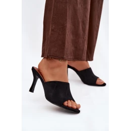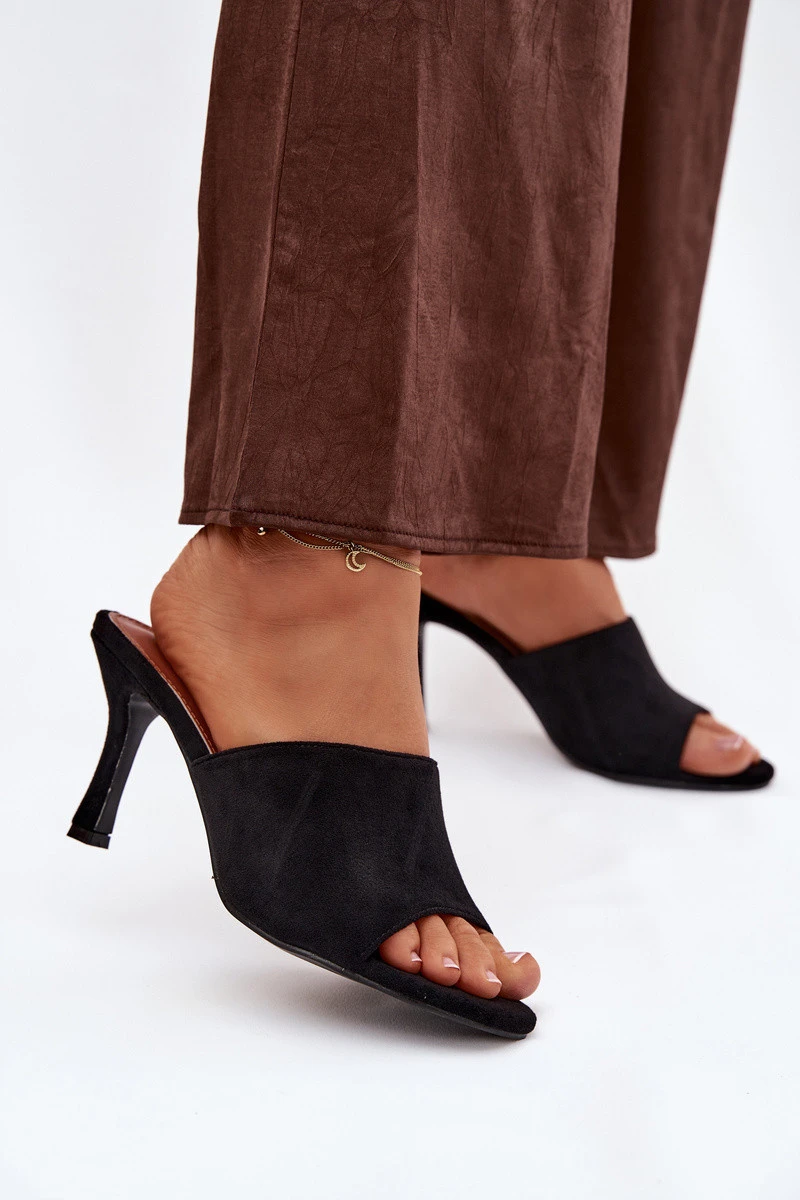 Dámské pantofle na podpatku z eko semiše černé Isolia