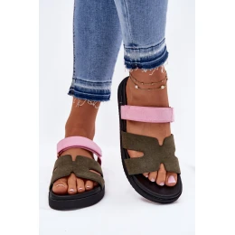 Dámské Pantofle Na Suchý Zip Vinceza 17401 Zeleno-Růžové