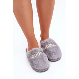Dámské Pantofle S Kožešinou A Nápisem Šedé Kalelia