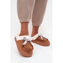 Dámské pantofle s kožíškem a mašlí Fenella – hnědé