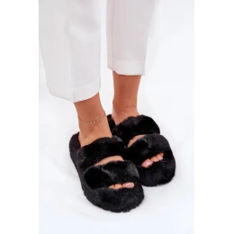 Dámské pantofle s kožíškem na platformě Talfedi – černé