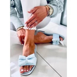 Dámské pantofle s mašlí H47 Světle modrá - Sixth Sens