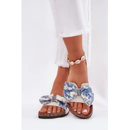 Stylové pantofle s korkovou podrážkou se vyznačují profilovanou stélkou. Jsou vyrobeny z eko semiše a textilního materiálu. Přední část zdobí mašle. Pantofle jsou univerzální a skvěle se hodí pro každodenní aktivity, práci nebo nakupování. To je ideální volba na letní dny! Při výběru velikosti se řiďte tabulkou velikostí.