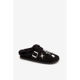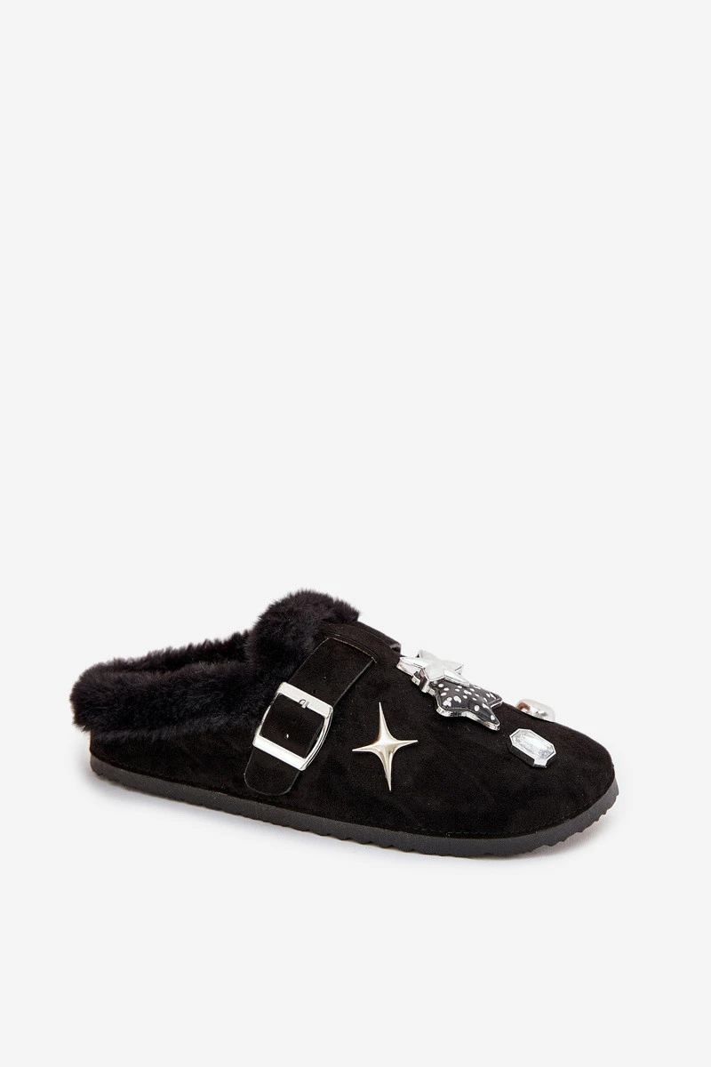 Dámské pantofle s ozdobami a sponou vyhřívané kožešinou černé Thalora