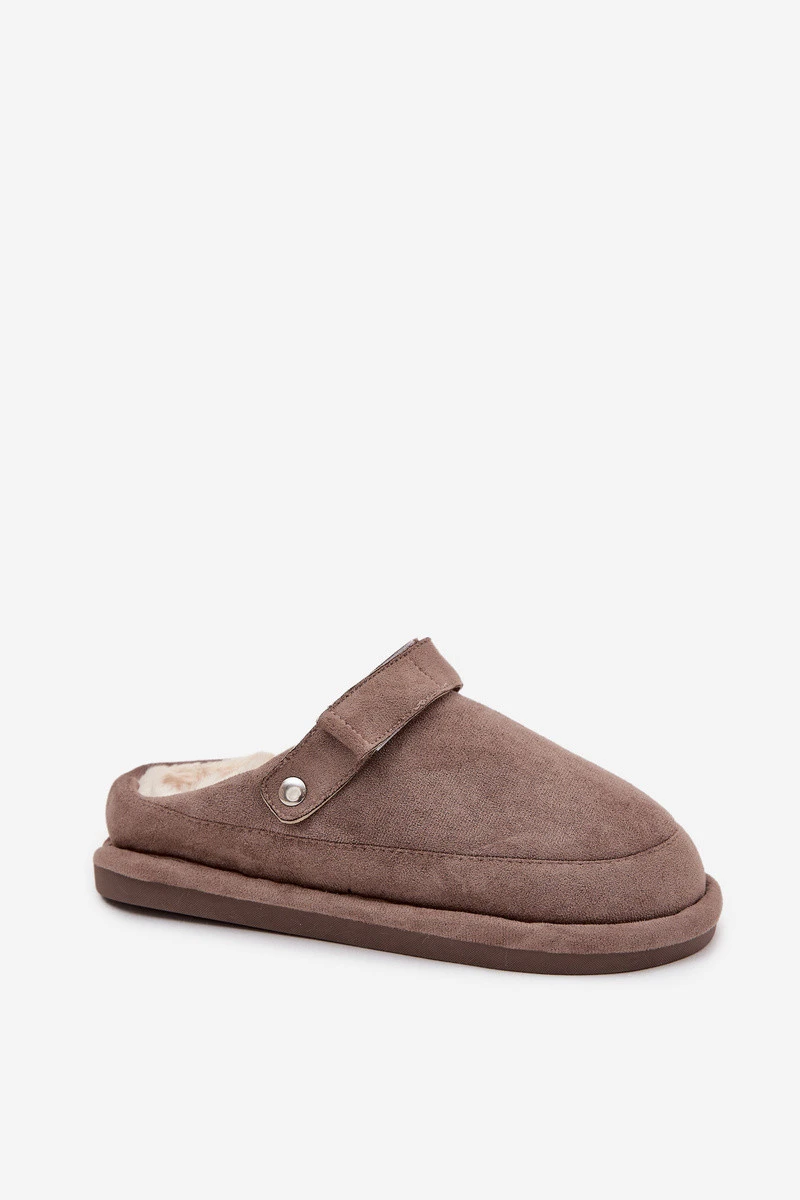 Dámské pantofle s páskem Vyhřívané s kožíškem Tmavě béžové Rilena