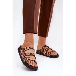 Dámské Pantofle S Pásky A Přezkami V Leopardím Vzoru Hnědé Uliri