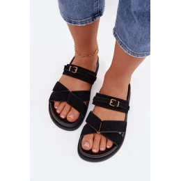Dámské pantofle s pásky a zlatým přezkou Černé Selorina