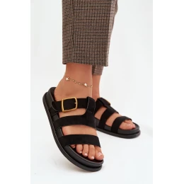 Dámské pantofle s pásky a zlatým sponem Černé Ulirissa