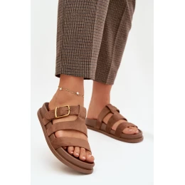 Dámské pantofle s pásky a zlatým sponou, hnědé Ulirissa