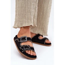 Dámské Pantofle S Přezkami A Dekorativním Švem Černé Visley