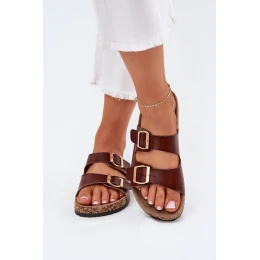 Dámské Pantofle S Přezkami Z Eko Kůže Hnědé Iskira