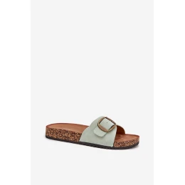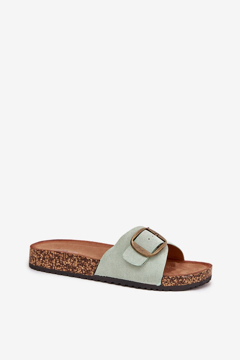 Dámské pantofle s přezkou na korkové platformě – mentolové Zavira