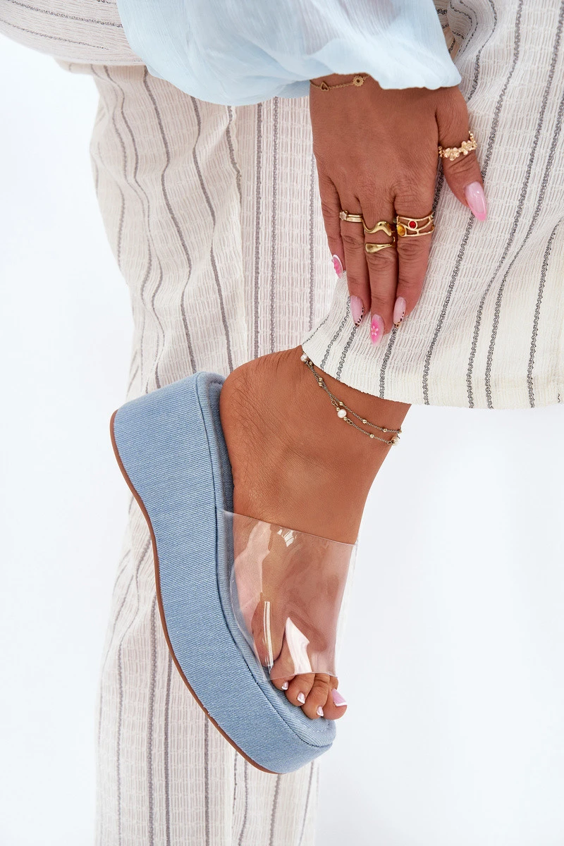Dámské Pantofle S Průhledným Páskem Na Klínu Jeans Meltiana