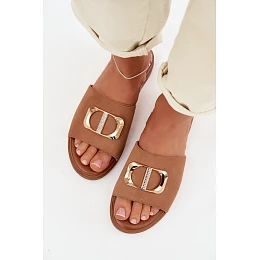 Dámské nazouváky na jemné platformě jsou stylovou a pohodlnou volbou na teplé dny. Pás vyrobený z eko semiše působí jemně a příjemně se přizpůsobuje noze, zdůrazňujíc ženský charakter modelu. Obuv zdobí zlatý detail s kamínky, který přidává eleganci a upoutá pozornost. Měkká vložka zvyšuje komfort nošení, takže nazouváky jsou skvělé na každodenní aktivity. Lehká a efektní obuv ideální pro letní outfity. Při výběru velikosti se řiďte tabulkou velikostí.