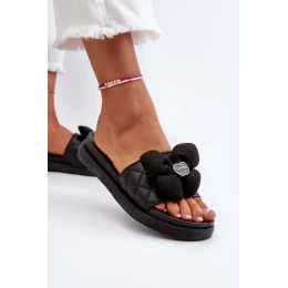 Dámské pantofle se zdobením na nízké platformě, černá cedrella