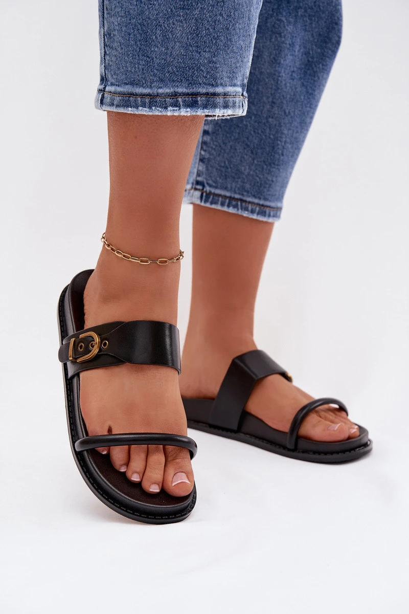 Dámské pantofle se zlatým sponou Černé Sarilisse