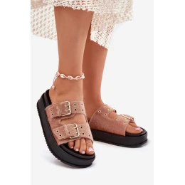 Dámské Pantofle Se Zlatými Přezkami Na Platformě Béžové Virvania