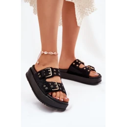Dámské Pantofle Se Zlatými Přezkami Na Platformě Černé Virvania