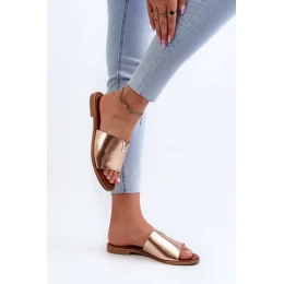 Dámské žabky vyrobené z ekologické kůže. Zlatý prvek dodá lesk vašemu letnímu stylingu. Nasazené na plochém podpatku. Tento model bude perfektní volbou pro mnoho příležitostí! Při výběru velikosti se řiďte tabulkou velikostí.