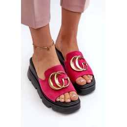Dámské pantofle z ekologického semiše na klínku a platformě se zlatým zdobením Fuchsia Iaria