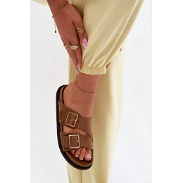 Dámské pantofle z imitace semiše zlaté přezky Camel Selissea