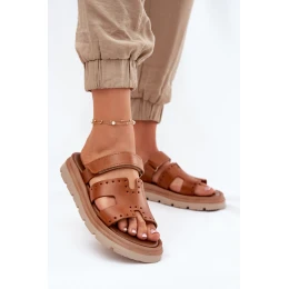 Dámské Pantofle Z Přírodní Kůže Na Platformě Hnědé Zazoo 40440