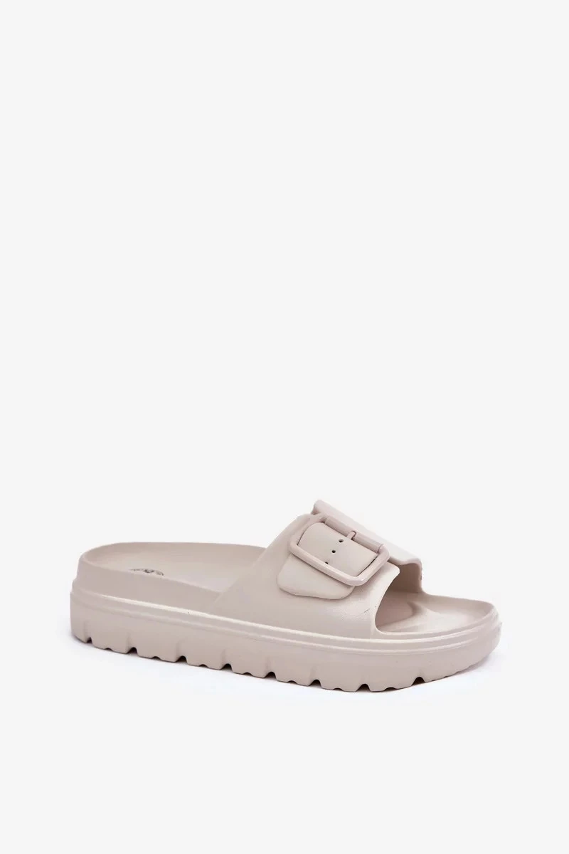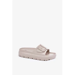 Dámské pantofle z lehkého pěnového materiálu na zvýšené platformě kombinují pohodlí s moderním vzhledem. Nastavitelná přezka umožňuje přizpůsobení šířky nártu, takže pantofle dobře sedí a jsou komfortní i při delším nošení. Béžové provedení je nadčasové a snadno kombinovatelné.