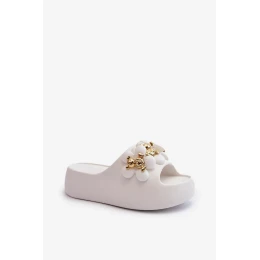 Dámské pěnové pantofle s ozdobami na silné podrážce, bílá Bremavia