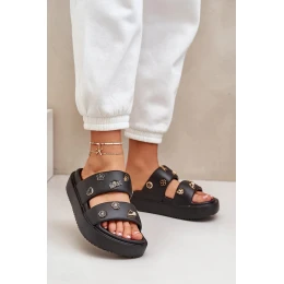 Dámské pěnové pantofle s ozdobnými připínkami – černé