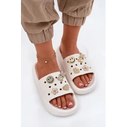 Dámské pěnové pantofle s ozdobnými připínkami Vinceza – bílé