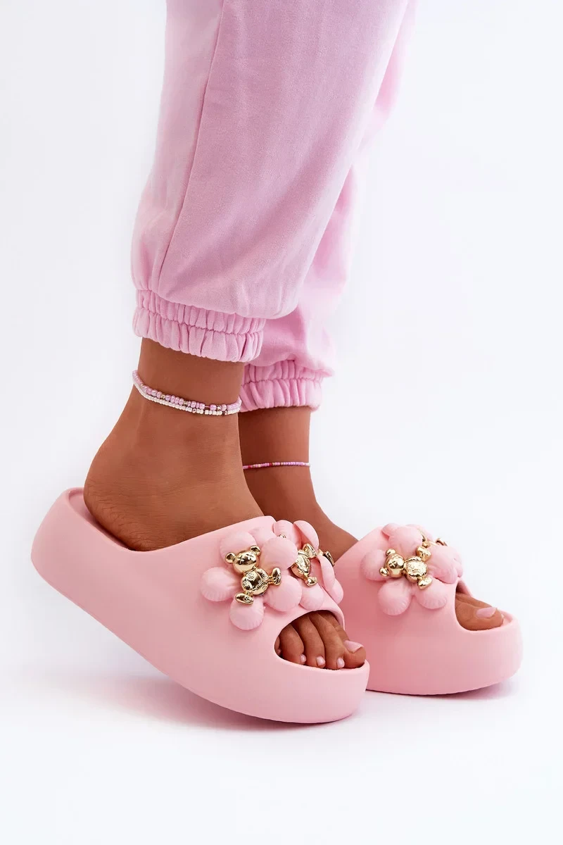 Dámské pěnové pantofle se zdobením na silné podrážce růžové Bremavia