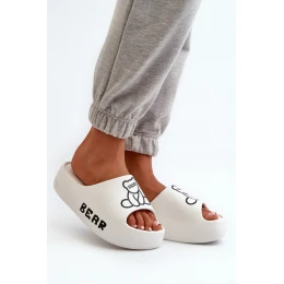 Dámské pěnové žabky na masivní podrážce s medvídkem bílé Lamira