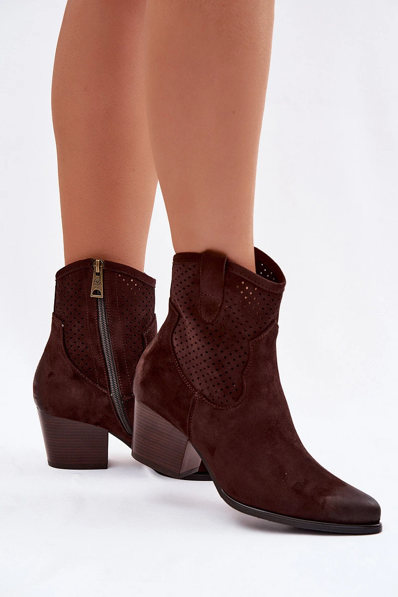 Dámské perforované kotníkové boty Kovbojky Vinceza 58150 Hnědé