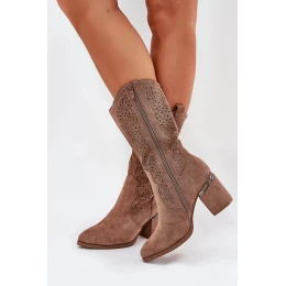 Dámské perforované kozačky do poloviny lýtka ve stylu kovbojek S.Barski – hnědé, eko kůže