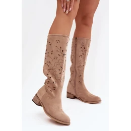 Dámské perforované kozačky na podpatku Helinna – khaki