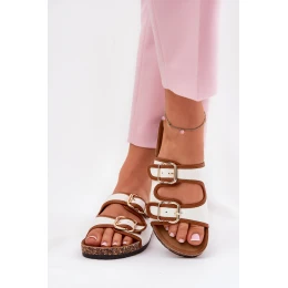 Dámské Plátěné Pantofle Na Korkové Platformě S Přezkami Bílé Osoffe