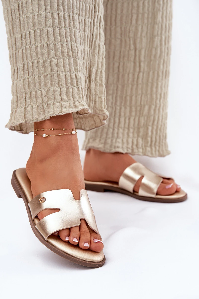 Dámské pantofle vyrobené z eko kůže jsou pohodlnou a stylovou volbou na teplé dny. Uloženy na plochém podpatku, zajišťují komfort a stabilitu po celý den. Vepředu se nachází malý ozdobný detail, který jim dodává jemné kouzlo. Měkká stélka zaručuje pohodlí, což znamená, že tyto pantofle budou vynikající volbou pro letní stylizace, kombinující funkčnost s elegantním vzhledem. Ideální na každodenní nošení, jak pro neformální, tak pro elegantnější outfity. Při výběru velikosti se řiďte tabulkou velikostí.