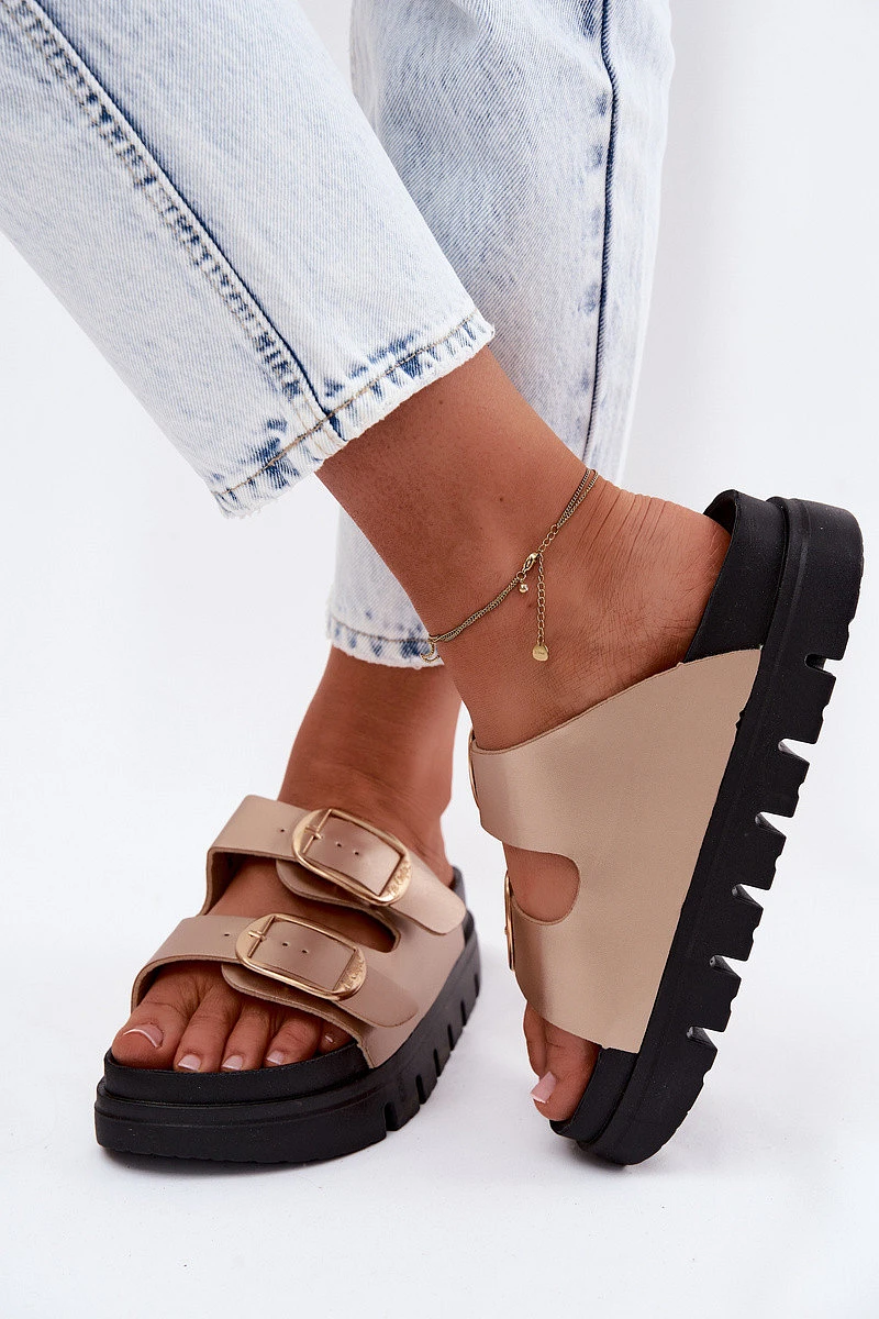 Dámské platformové nazouváky s přezkami Lee Cooper LCW-26-35-4462L Zlaté