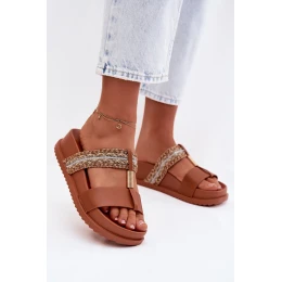 Dámské sandály na platformě jsou stylovým tipem na teplé dny. Model se vyznačuje lesklým páskem s pleteným vzorem, který přitahuje pozornost a dodává celku módní charakter. Zlatý detail spojující dva pásky je elegantní akcent, který podtrhuje výjimečný vzhled obuvi. Platforma zajišťuje pohodlí při nošení a stabilitu, takže sandály jsou ideální pro letní stylizace. Při výběru velikosti se řiďte tabulkou velikostí.