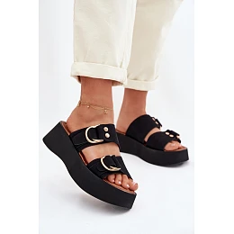 Dámské platformové sandály se zlatými sponami Černé Nelirae