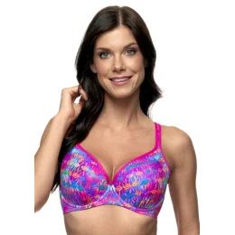 Dámské plavky Fantasy z nové kolekce Amy. Dámský horní plavkový díl v zářivém barevném provedení má jemně vyztužené nařasené košíčky s kosticemi a nižší střed. Plavky lemuje úzký proužek v růžové barvě. Střih košíčků a středně široký obvod podprsenky s bočními pružnými kosticemi Vám zaručí pevné a pohodlné nošení. Podprsenka má nastavitelná ramínka, která lze jednoduše zapnout, nebo uvázat za krk. Zadní zapínání je ukončeno pevně všitou sponou na záháknutí. Plavky jsou české výroby a koupí tohoto výrobku podpoříte produkci českého oděvního průmyslu.