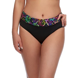 Dámské plavky Fantasy 2026 z nové kolekce Casia. Tento model v elegantním černém provedení je klasického střihu a po obvodu má všitý vyšší pestrobarevný lem. U větších velikostí se snižuje výkroj nohaviček. U těchto plavek lze libovolně kombinovat spodní a horní díl v řádu zadaných velikostí jednotlivých dílů. Plavky jsou české výroby a koupí tohoto výrobku podpoříte produkci českého oděvního průmyslu.
