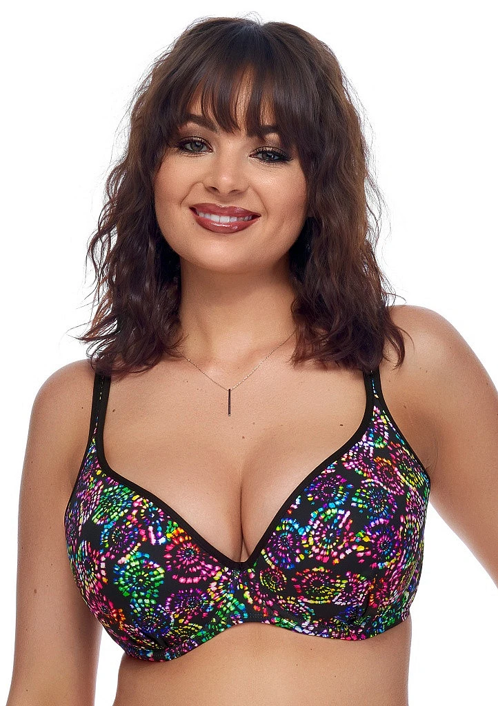 Dámské plavky Fantasy 2026 z nové kolekce Casia. Dámský horní plavkový díl v pestrobarevném provedení má jemně vyztužené nařasené košíčky s kosticemi a nižší střed. Plavky lemuje úzký proužek v černé barvě. Střih košíčků a středně široký obvod podprsenky s bočními pružnými kosticemi Vám zaručí pevné a pohodlné nošení. Podprsenka má nastavitelná ramínka, která lze jednoduše zapnout, nebo uvázat za krk. Zadní zapínání je ukončeno pevně všitou sponou na záháknutí. Plavky jsou české výroby a koupí tohoto výrobku podpoříte produkci českého oděvního průmyslu.