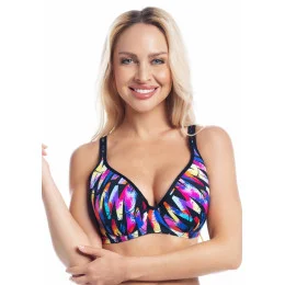 Dámské plavky Fantasy z nové kolekce Neon. Dámský horní plavkový díl v zářivém barevném provedení má jemně vyztužené nařasené košíčky s kosticemi a nižší střed. Plavky lemuje úzký proužek v černé barvě. Střih košíčků a středně široký obvod podprsenky s bočními pružnými kosticemi Vám zaručí pevné a pohodlné nošení. Podprsenka má nastavitelná ramínka, která lze jednoduše zapnout, nebo uvázat za krk. Zadní zapínání je ukončeno pevně všitou sponou na záháknutí. Plavky jsou české výroby a koupí tohoto výrobku podpoříte produkci českého oděvního průmyslu.