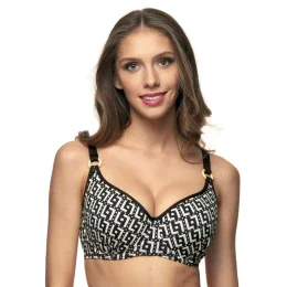 Dámské plavky Fantasy z nové kolekce Giani. Dámský horní plavkový díl v elegantním černo bílám provedení má jemně vyztužené nařasené košíčky s kosticemi a vysoký střed. Střih košíčků a široký obvod podprsenky s bočními pružnými kosticemi Vám zaručí pevné a pohodlné nošení a přitom Vám vytvaruje krásný a plný dekolt. Podprsenka má pevně všitá, nastavitelná ramínka, která mají ozbodné kovové plastové kroužky. Zadní zapínání je ukončeno pevně všitou sponou na záháknutí. U těchto plavek lze libovolně kombinovat spodní a horní díl v řádu zadaných velikostí jednotlivých dílů. Plavky jsou české výroby a koupí tohoto výrobku podpoříte produkci českého oděvního průmyslu.