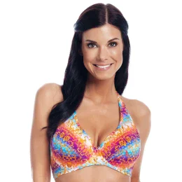 Dámské plavky Fantasy z nové kolekce Lina. Dámský horní plavkový díl s atraktivním vzorem má nevyztužené podšité košíčky s kosticemi a nižší střed. Střih košíčků a středně široký podšitý obvod podprsenky se širšími zády pro lepší oporu poprsí Vám zaručí pevné a pohodlné nošení tohoto modelu. Ramínka nejsou odepínací, jsou pevná a dají se zavázat pouze za krkem. Zadní zapínání je širší. U těchto plavek lze libovolně kombinovat spodní a horní díl v řádu zadaných velikostí jednotlivých dílů. Plavky jsou české výroby a koupí tohoto výrobku podpoříte produkci českého oděvního průmyslu.