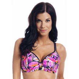 Dámské plavky Fantasy z nové kolekce Neon. Dámský horní plavkový díl v zářivém barevném provedení má jemně vyztužené nařasené košíčky s kosticemi a nižší střed. Plavky lemuje úzký proužek v černé barvě. Střih košíčků a středně široký obvod podprsenky s bočními pružnými kosticemi Vám zaručí pevné a pohodlné nošení. Podprsenka má nastavitelná ramínka, která lze jednoduše zapnout, nebo uvázat za krk. Zadní zapínání je ukončeno pevně všitou sponou na záháknutí. Plavky jsou české výroby a koupí tohoto výrobku podpoříte produkci českého oděvního průmyslu.